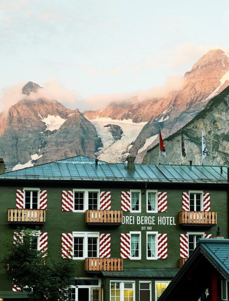 Drei Berge Hotel - Hôtel founded in 1907, located in Mürren, Switzerland. Reimagined by Ramdane Touhami. Reopening 2023.